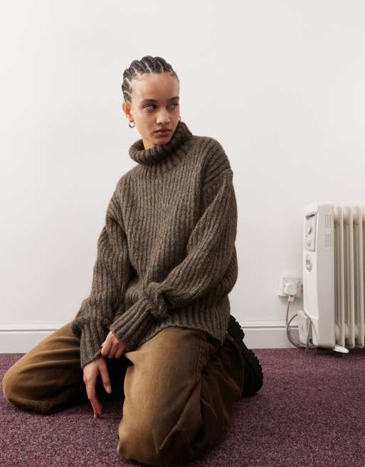 Weekday Elvine chunky knit turtle neck jumper in brown