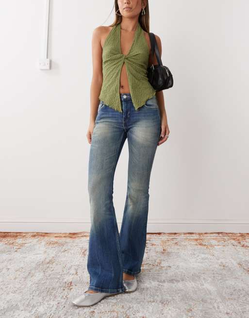 Weekday Flame low waist flared jeans in gasoline blue