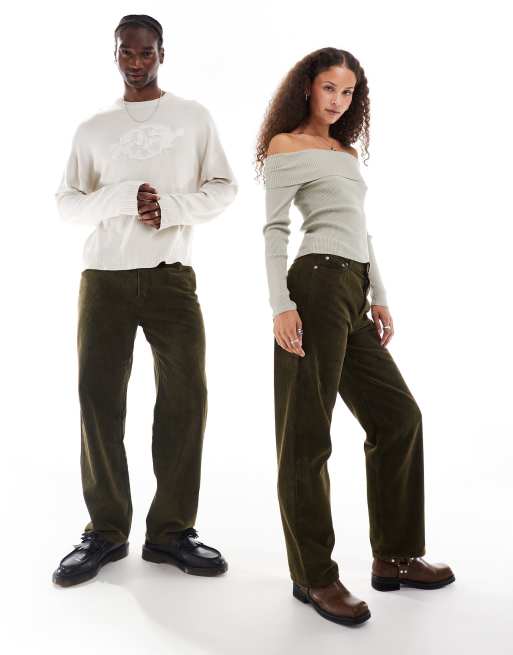 Weekday Galaxy Unisex cord trousers in washed green