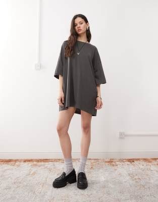 Weekday Huge t-shirt mini dress in charcoal exclusive to ASOS