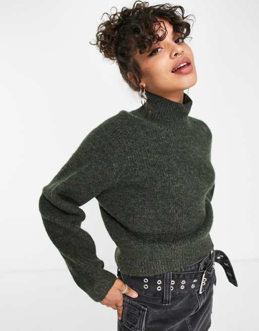 Weekday Ice high neck jumper in khaki