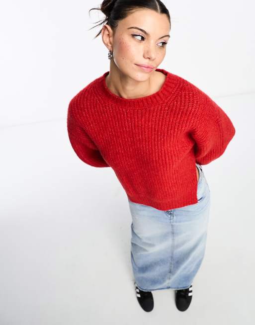 Weekday Ivy knitted jumper with split side detail in red melange