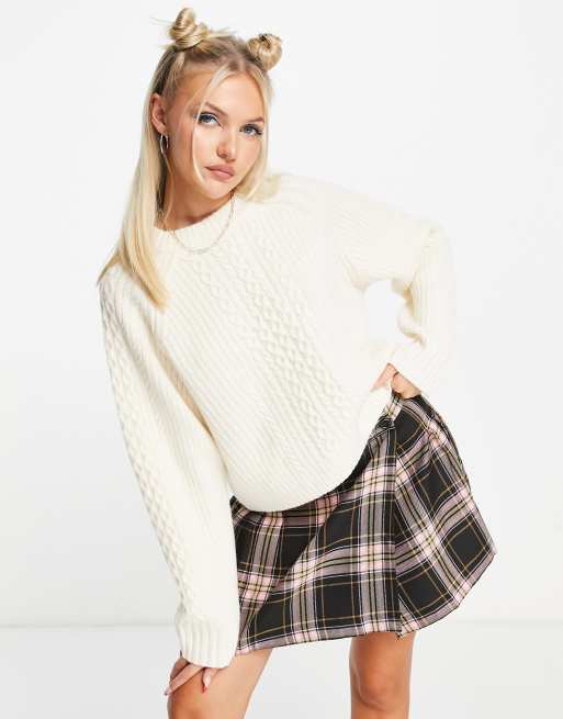 Weekday Jill co-ord cable knit jumper in white