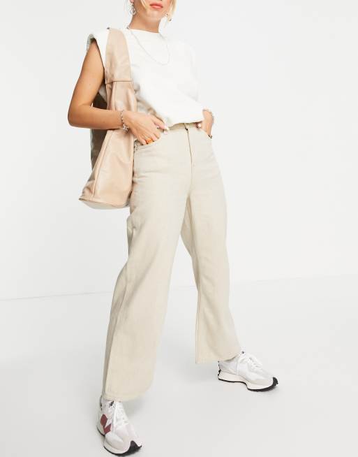 Weekday Linear cotton wide leg pull on jeans in ecru - BEIGE
