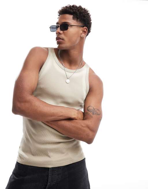 Weekday Matheus rib vest tank top with spray effect in dark beige