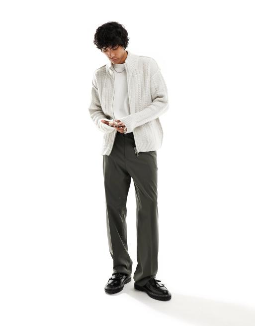 Weekday Mattias wool blend zip through cable knit cardigan in off-white