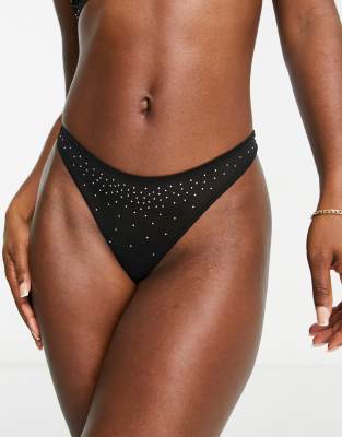 Weekday mesh thong with diamante detail in black