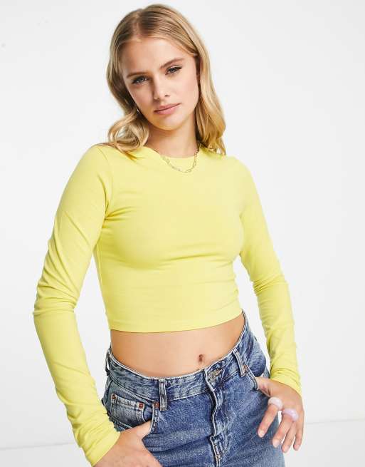 Weekday Mini long sleeve crop top in yellow
