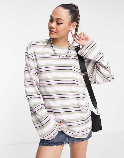 Weekday Now oversized stripe long sleeve top in lilac stripe