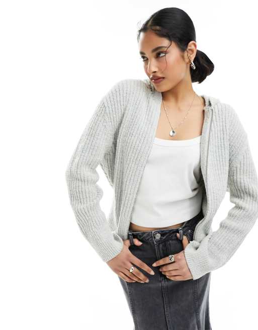 Weekday Ofelia zip through knitted cardigan hoodie in light grey