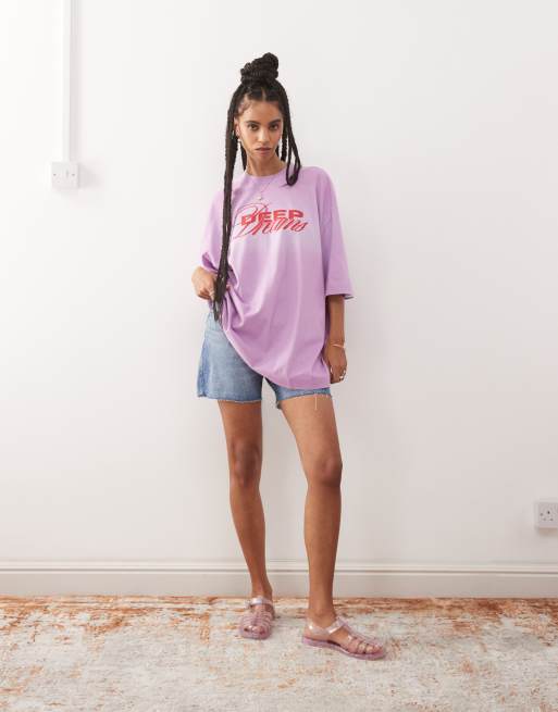 Weekday oversized t-shirt with deep dreams graphic print in pink and lilac spray wash