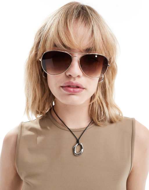 Weekday Pilot oversized aviator sunglasses with brown lens in gold