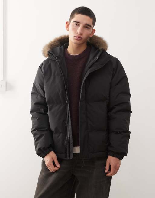 Weekday puffer coat with faux fur lined hood in black