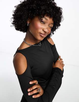 Weekday Remi cut out shoulder long sleeve top in black