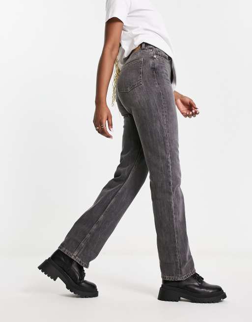 Weekday Rowe Extra high waist straight leg jeans in thunder black wash
