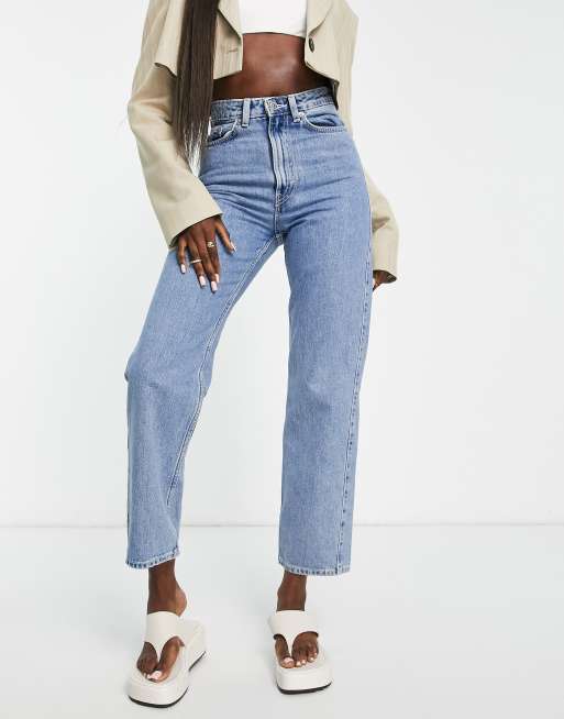Weekday Rowe high waist straight leg jeans in sky blue