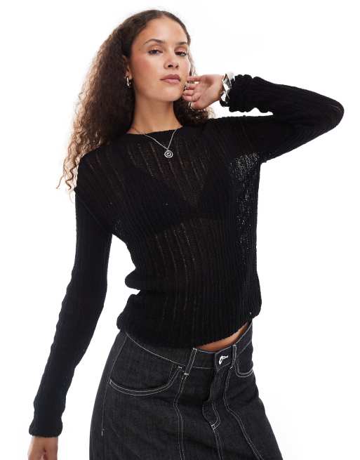Weekday slim fit lightweight rib jumper in black