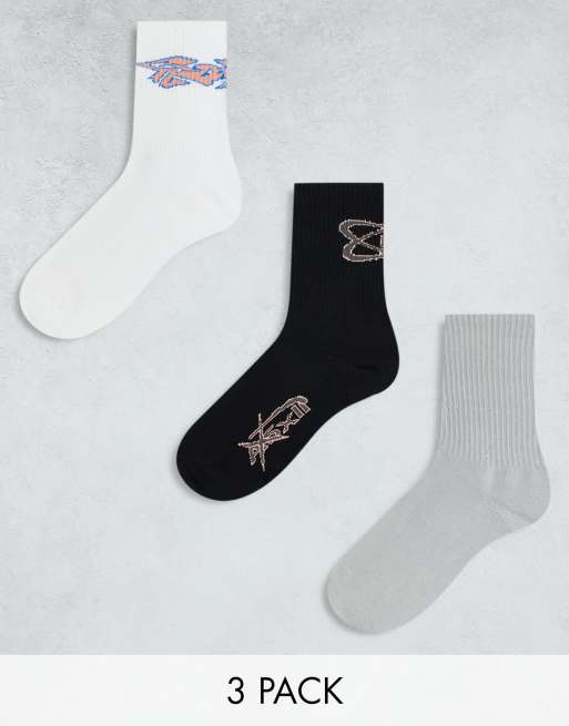 Weekday sports socks 3-pack with gaming graphics in grey white and black