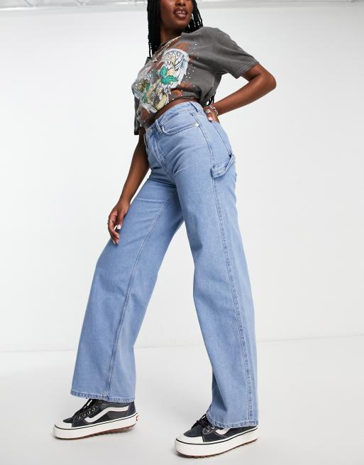 Weekday straight leg cargo jeans with pockets in splendid blue