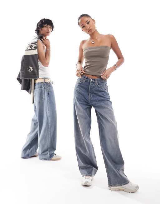Weekday Unisex Astro loose fit wide leg jeans in trove blue