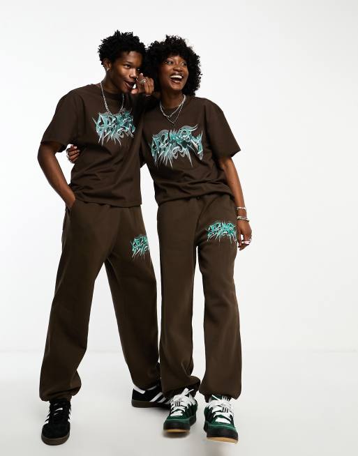 Weekday Unisex co-ord graphic joggers in brown exclusive to ASOS