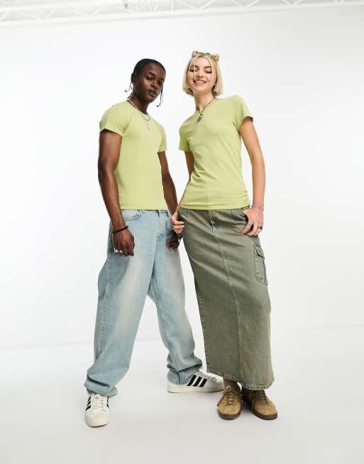 Weekday Unisex Conan fitted t-shirt in dusty green exclusive to ASOS