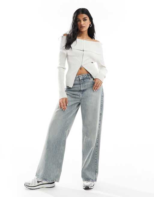 Weekday Vanna zip through off-shoulder cardigan in off-white