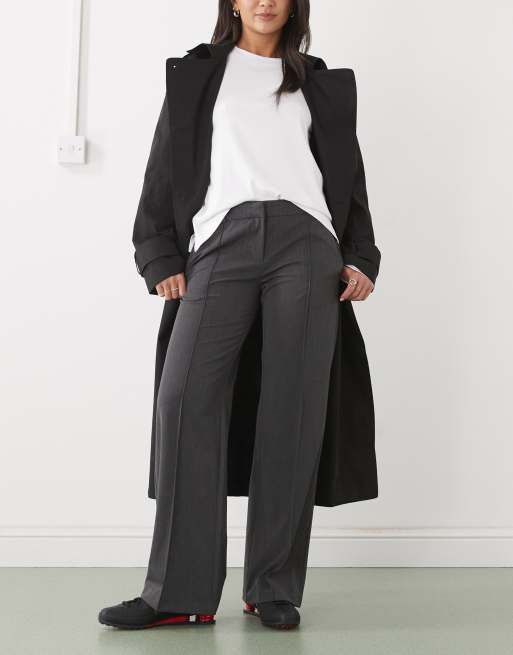 Weekday wide leg pleated trousers in dark grey melange