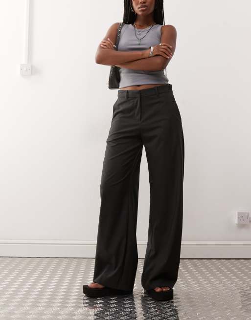 Weekday wide leg tailored trousers in dark grey melange