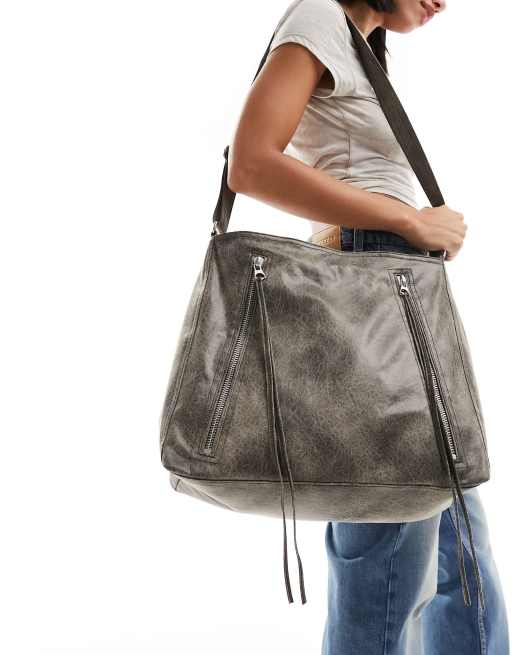 Weekday Zip distressed cross body bag with zips in black