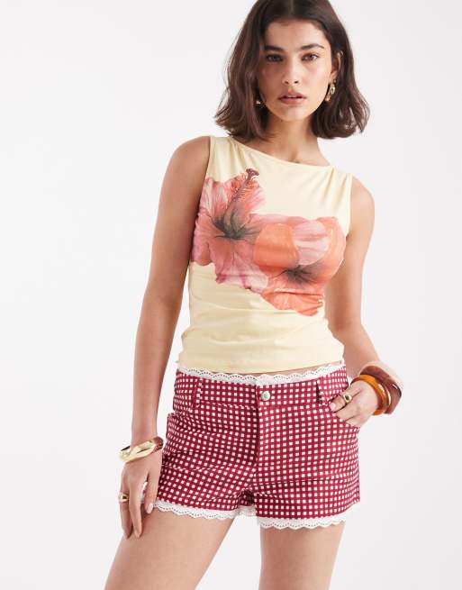 WeWoreWhat low rise hot pants with lace trim in red gingham
