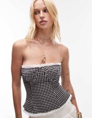 WeWoreWhat strapless corset top in black gingham