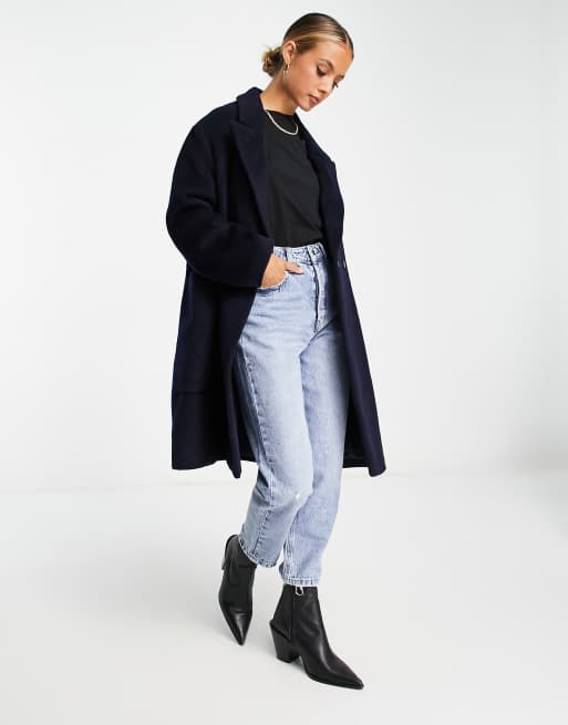 Whistles lola wool mix cocoon coat in navy