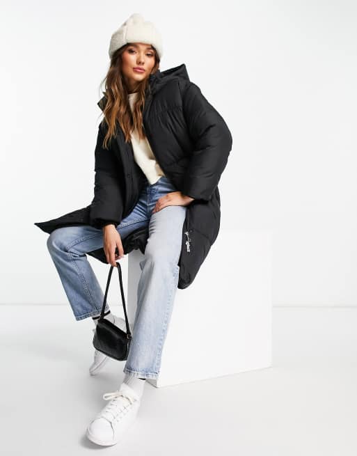 Whistles mid length hooded padded coat in black