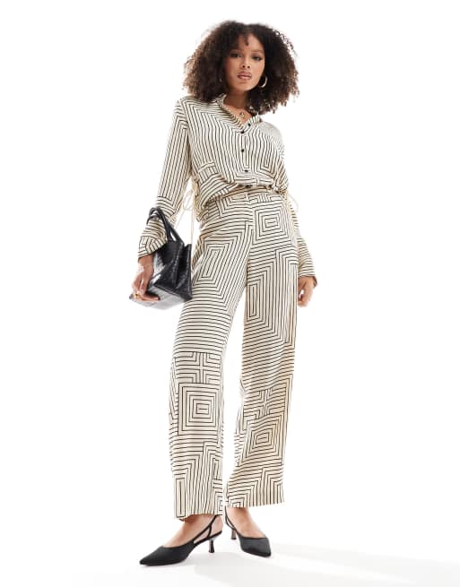 Whistles stripe wide leg trouser in ivory co-ord