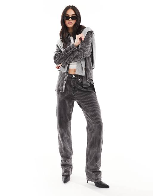 Whistles washed stripe straight leg jean co-ord in black denim