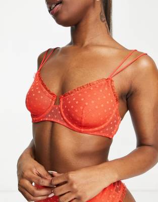 Wild Lovers Jane dobby mesh double strap ruffle trim bra in red