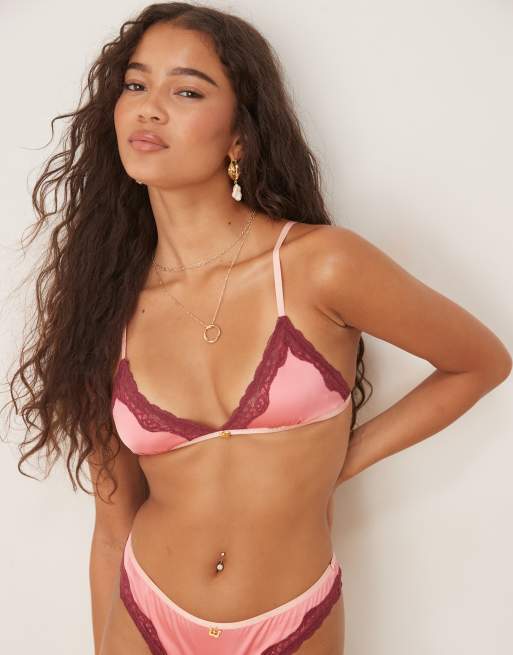 Wild Lovers Thea triangle soft bralette with lace trim detail in pink
