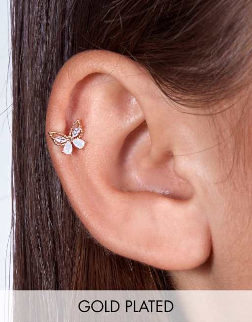 With Bling crystal butterfly shape labret earring with 6mm & 8mm titanium bar in gold plate