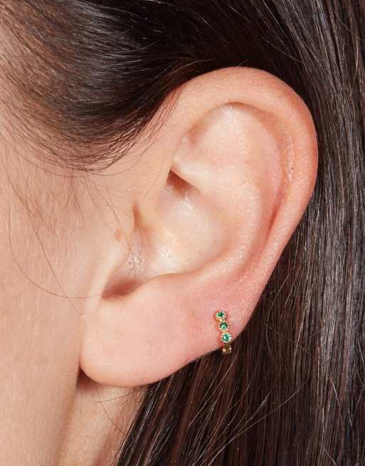 With Bling Exclusive green tiny triple crystal 6mm huggie piercing in 18k gold plate