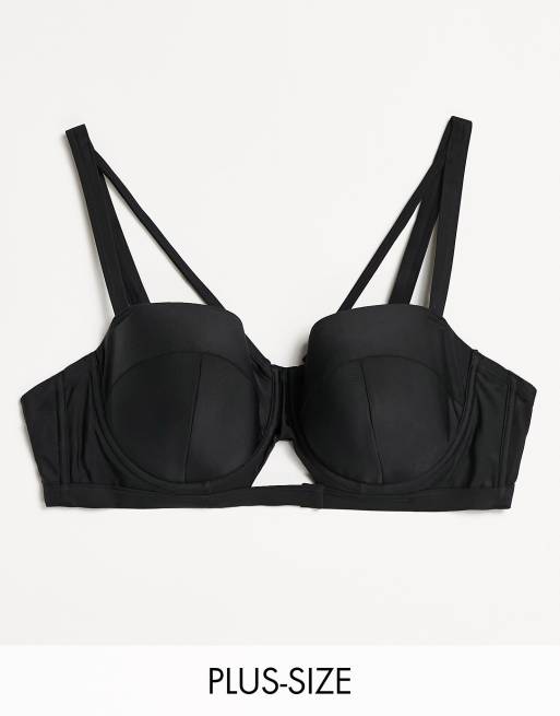 Wolf & Whistle Curve Exclusive cut out caged bikini top in black