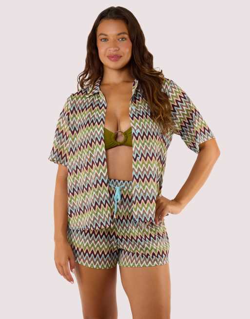 Wolf & Whistle Kalahari zig zag crochet beach shirt in khaki