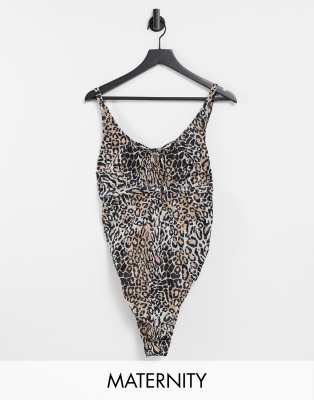 Wolf & Whistle Maternity Exclusive swimsuit with tie detail in leopard print