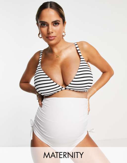 Wolf & Whistle Maternity Exclusive triangle bikini top in textured stripe