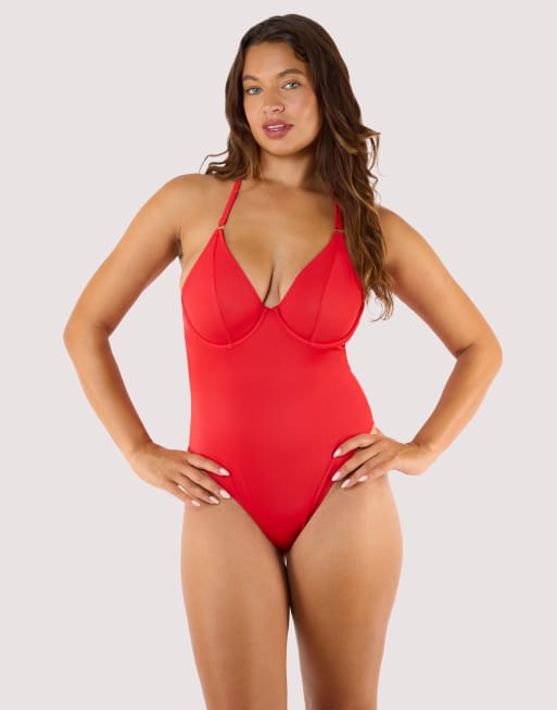 Wolf & Whistle Paloma underwired halterneck swimsuit in red