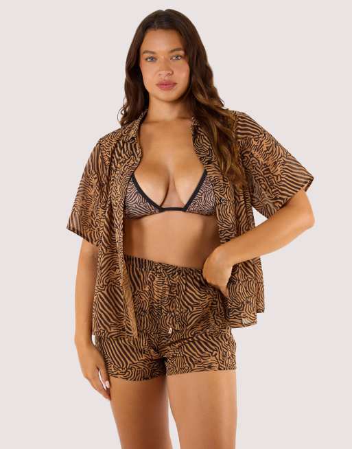 Wolf & Whistle Savana georgette beach shirt in tiger print