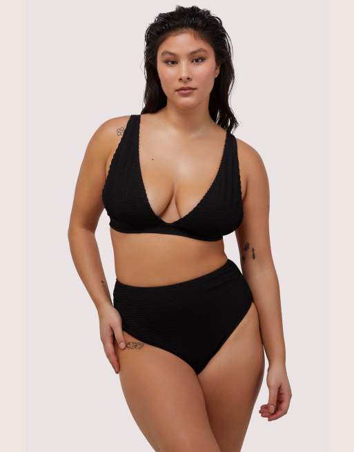 Wolf & Whistle Textured non wired plunge bikini top in black