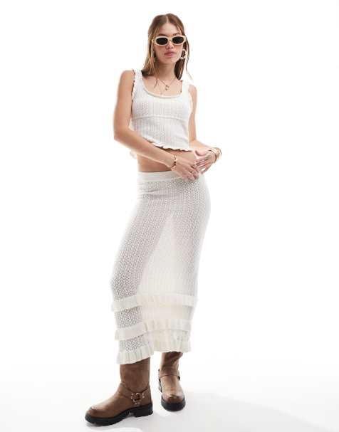 MORE COLOURSMiss Selfridge beach crochet maxi skirt in cream