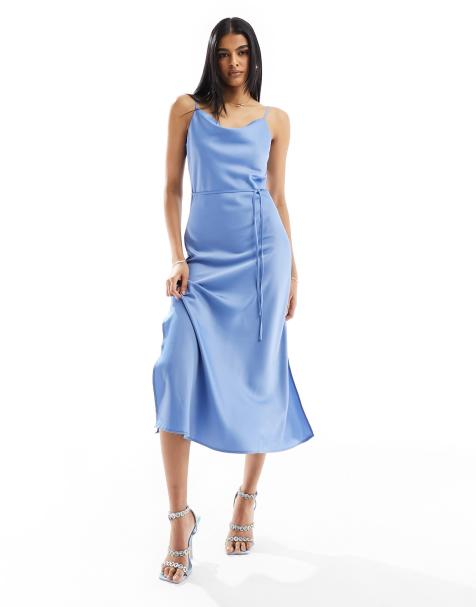 MORE COLOURSASOS DESIGN asymmetric strappy lace slip midi dress in pale blue