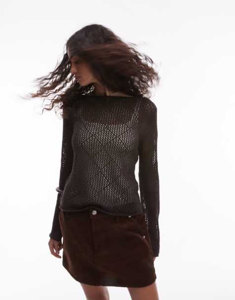 Topshop knitted embroidered floral jumper in burgundy